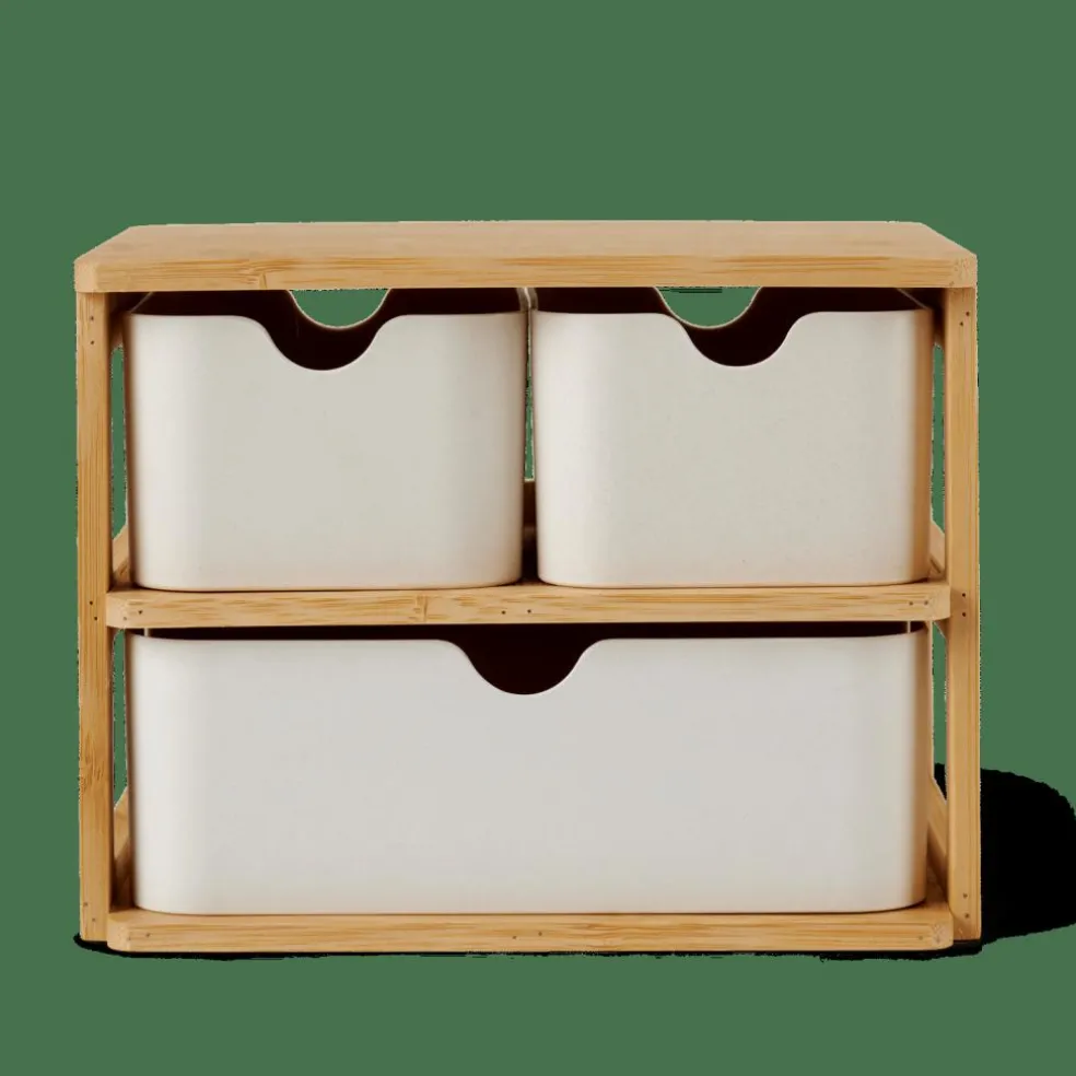 KONDO Organisateur 3 Tiroirs Blanc, Naturel
